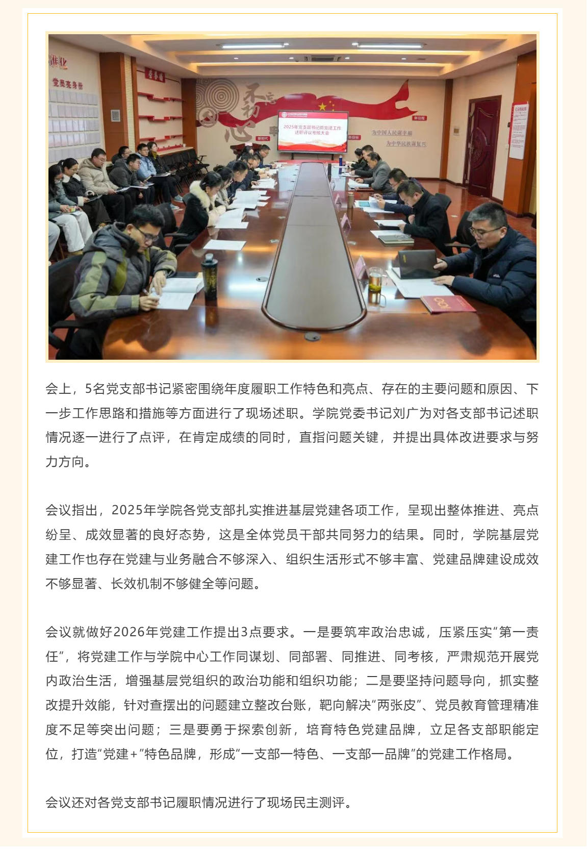 学院召开2025年度党支部书记抓党建工作述职评议考核会议